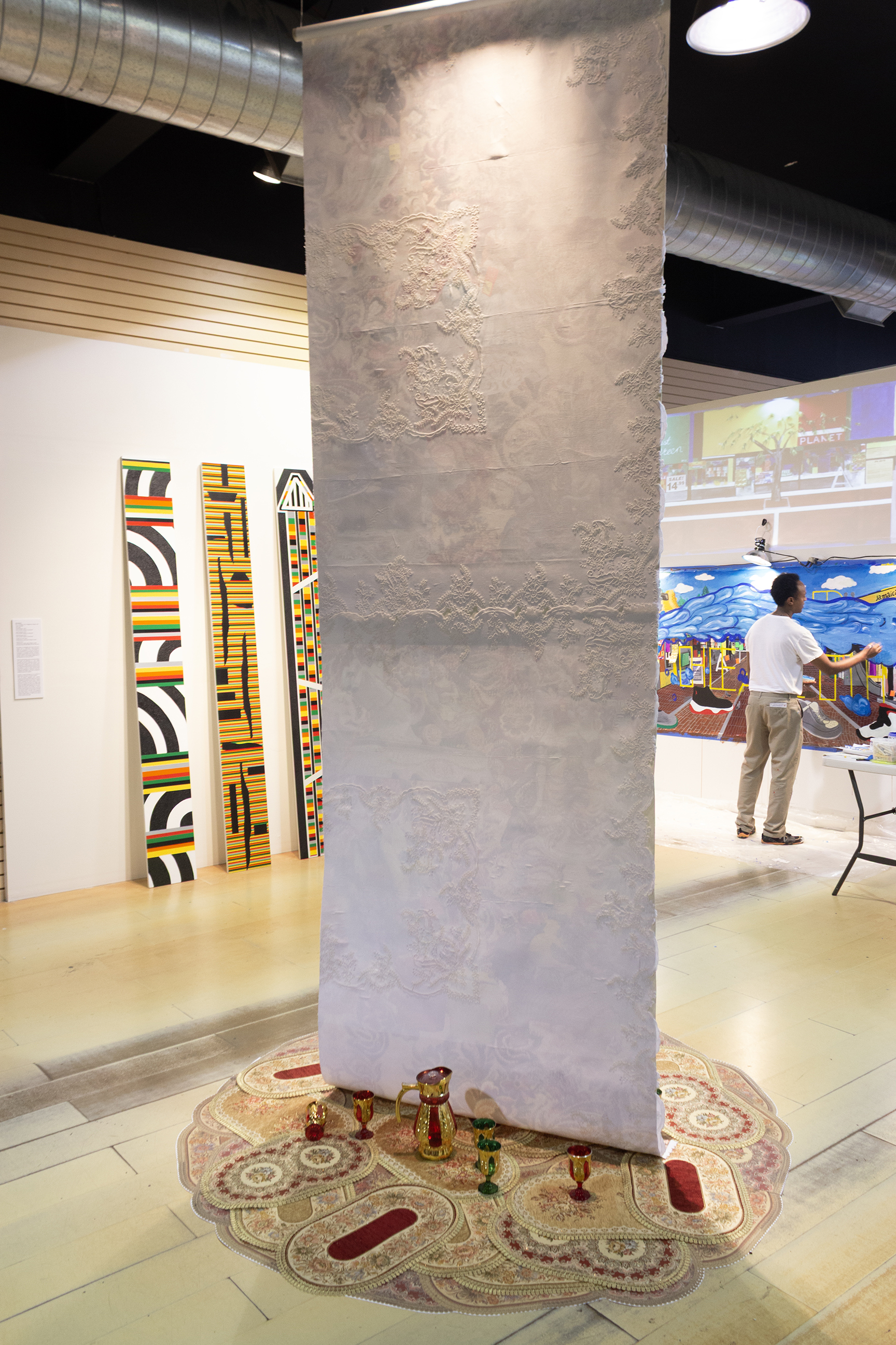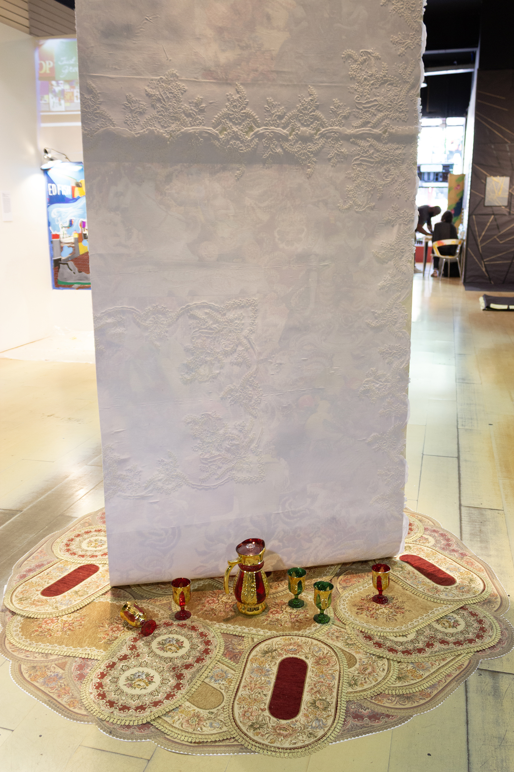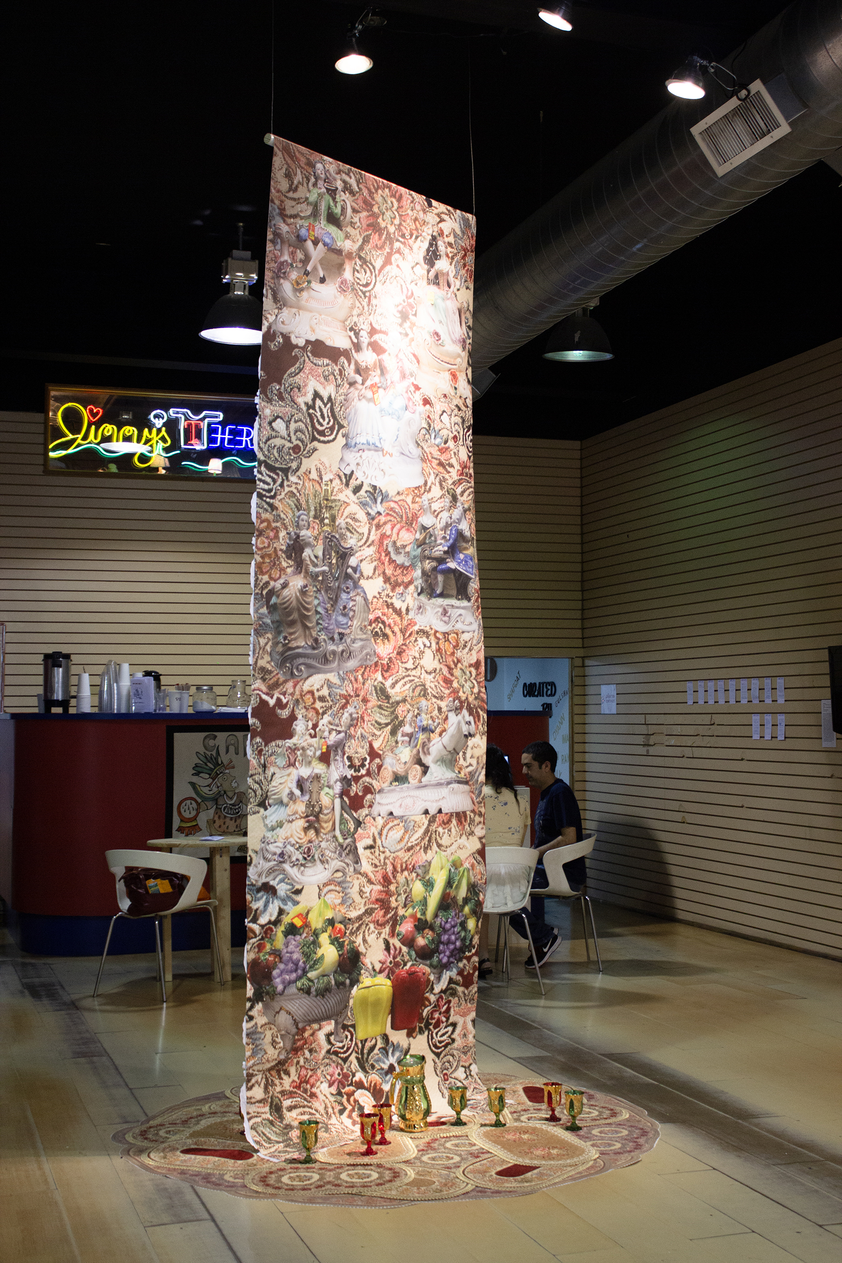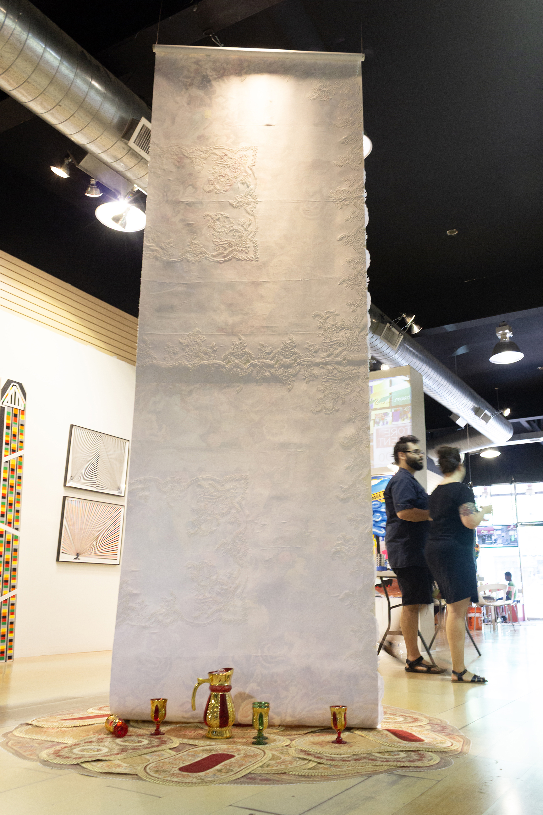No Longer Empty is pleased to present Jameco Exchange, a site-responsive exhibition and socially engaged education platform that revolves around the art of storytelling about a place: Jamaica, Queens. Featuring artworks and performances informed by Jamaica’s global urban setting, Jameco Exchange is inspired by the retail vernacular of the two-story storefront and the cobblestone pedestrian mall in which it is situated, the social culture of Jamaica Avenue, and the histories of Jamaica, Queens, through the lens of collective narrative.