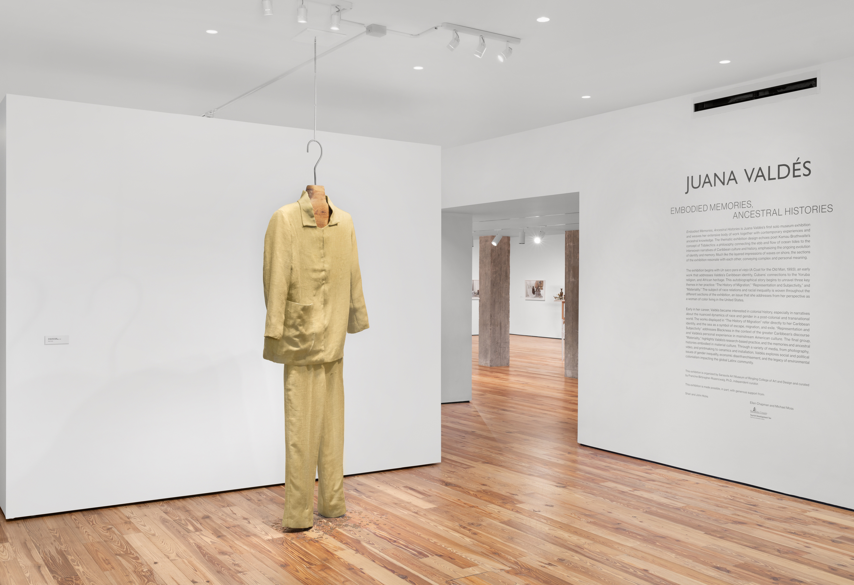For 30 years, Juana Valdés (b. Cuba, 1963) has transformed ideas, thoughts, and feelings into works of art anchored in stories, many of which are inspired by her personal experiences. The exhibition title, Embodied Memories, Ancestral Histories, encompasses many concepts and complexities. Beginning with Un saco para el Viejo (A Coat for the Old Man, 1993), a suit made from burlap by her mother, the artist addresses her Caribbean identity and introduces two recurrent aspects in her work: her Cuban roots and her African ancestry. With this installation as the prologue, the story Valdés tells unravels as the visitor moves through the galleries and becomes acquainted with three main topics that are not necessarily exclusive: “The History of Migration,” “Representation and Subjectivity,” and “Materiality.”