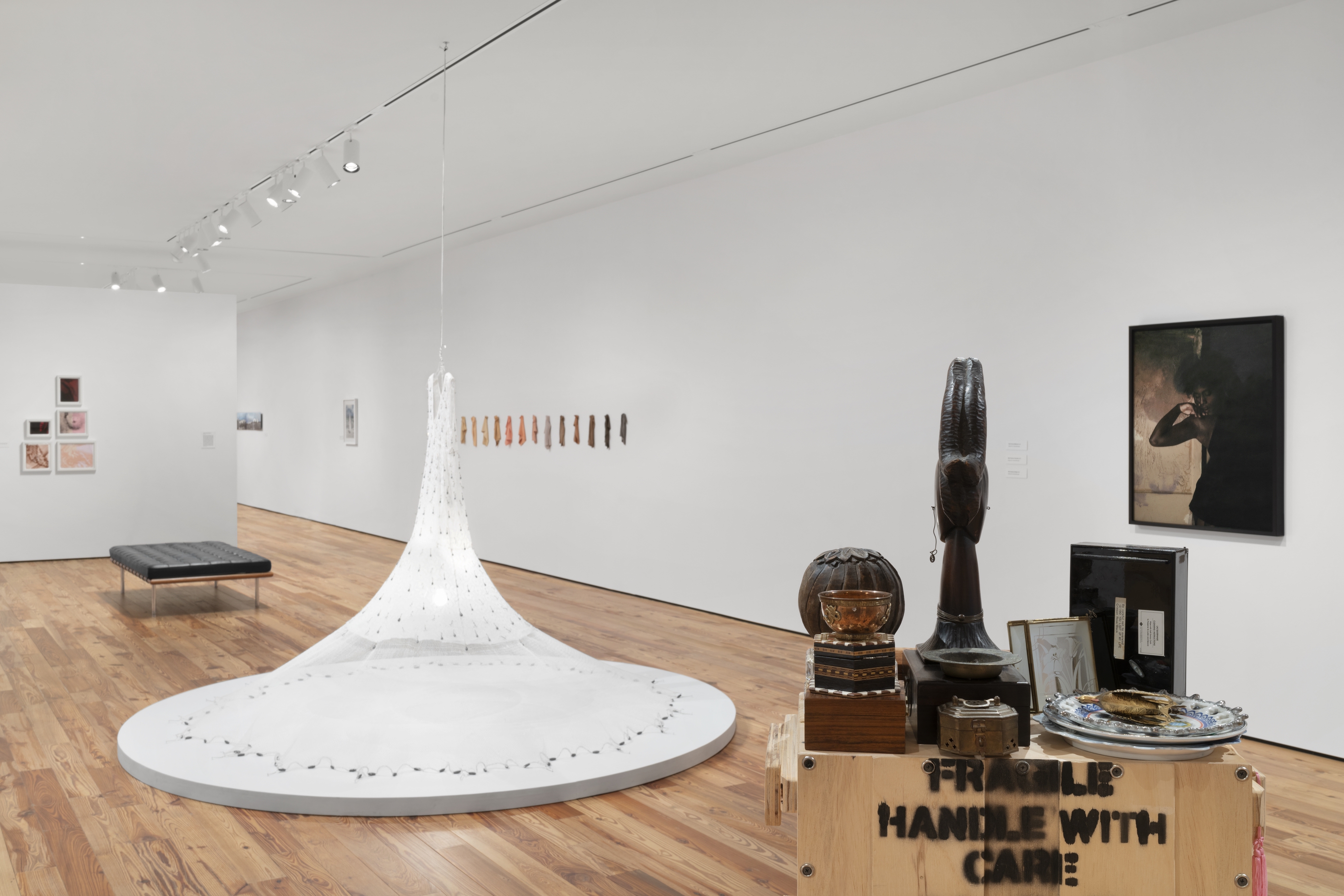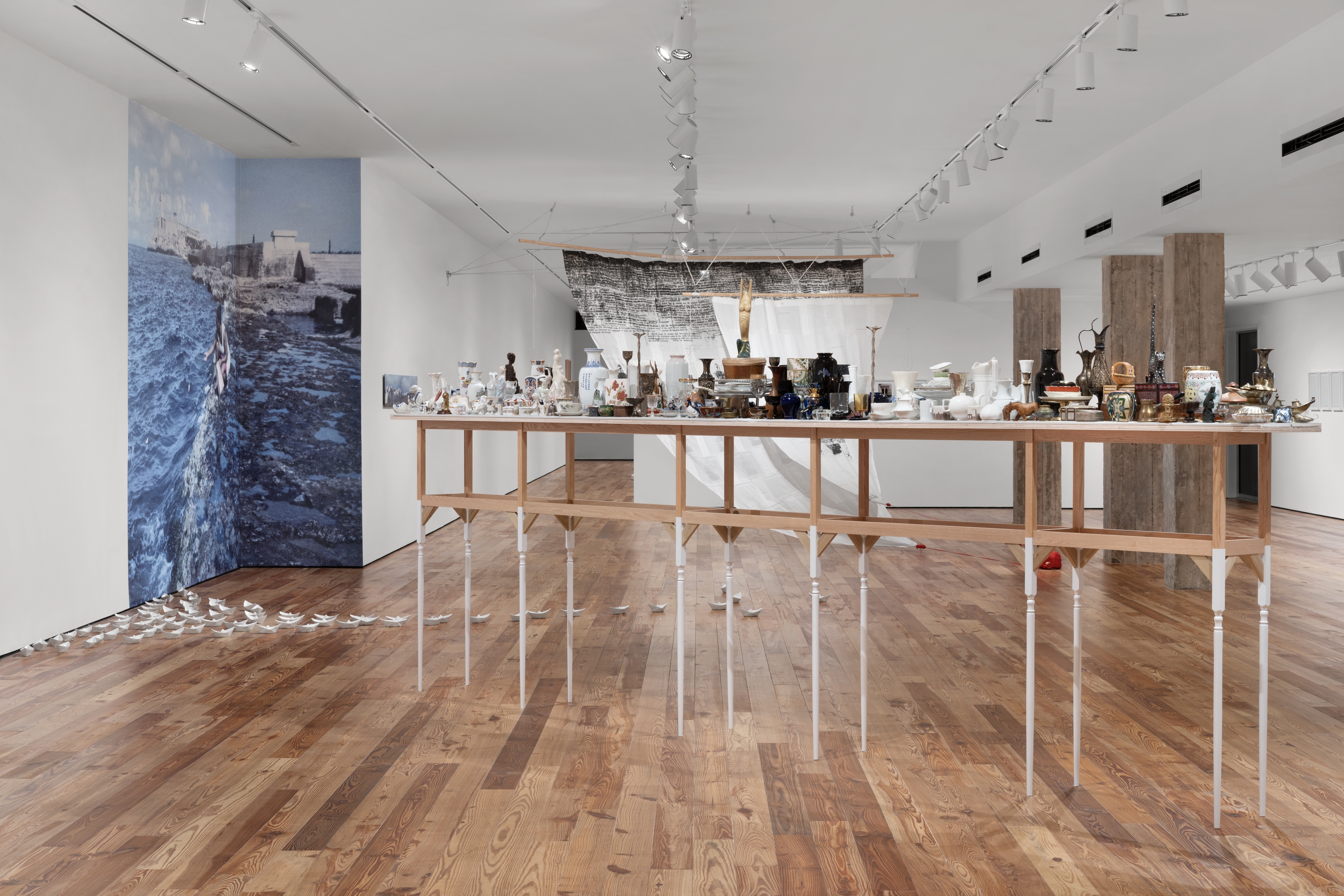 Since the mid-1990s, Valdés has been interested in history, especially in narratives related to her Afro-Cuban heritage. Through many of the works featured in the exhibition, she has generated a voice and a discourse inspired by themes such as colonization’s history and migration’s impact. Another significant theme is the issue of gender and the representation of the feminine body. Through several works, notably the installation Sweet Honesty-Tender Pink (1997), Valdés invites the public to reflect on the objectification of the female body and the “whitening of race” as a legacy of colonialism. Race is a connecting thread that links the different sections of the exhibition, an issue that she addresses from her experience as a woman of color living in the United States.
