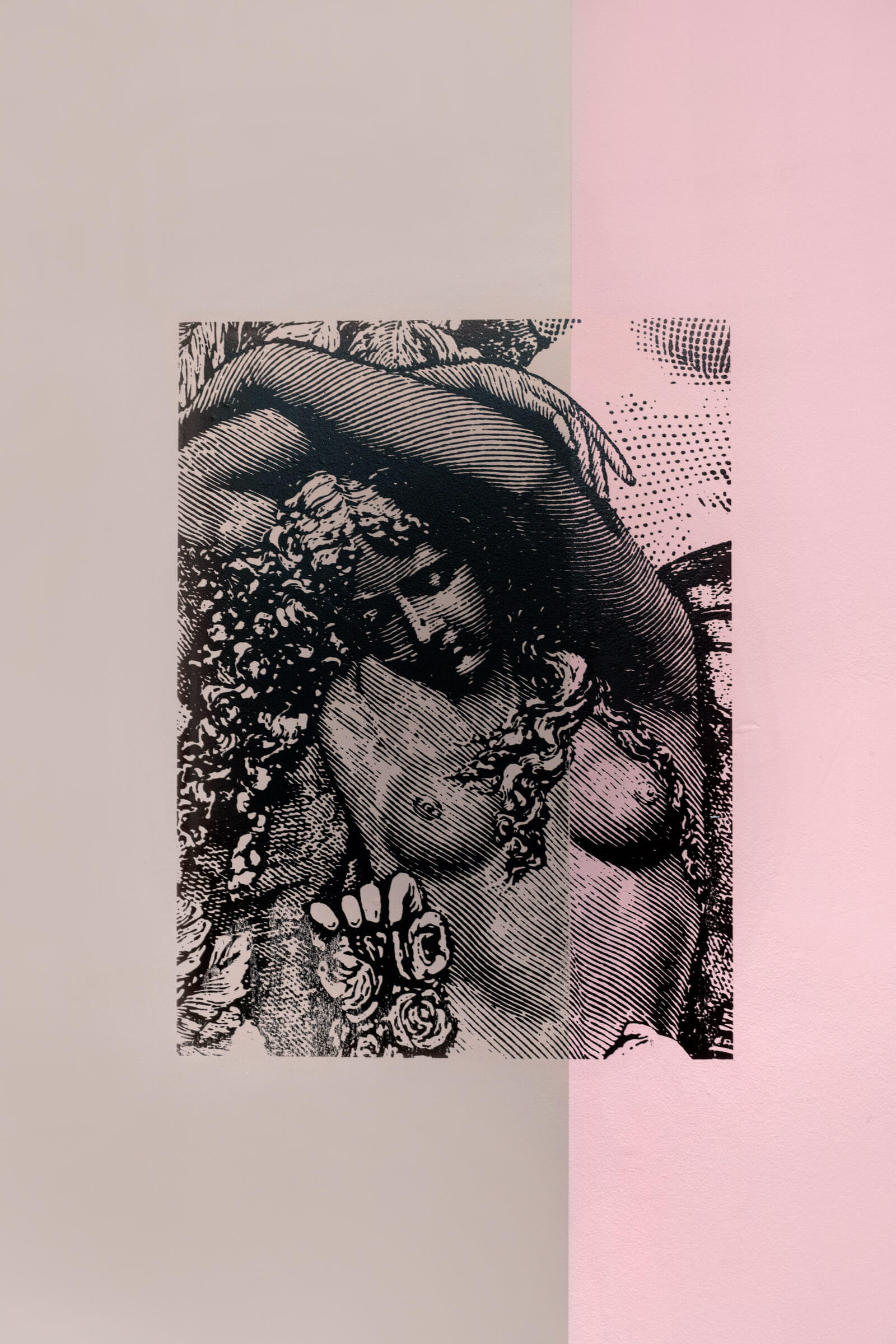 formatting medium: Installation (latex paint, silkscreen, video). Dimensions variable. Take a Second of me, 25:00 min. (loop).